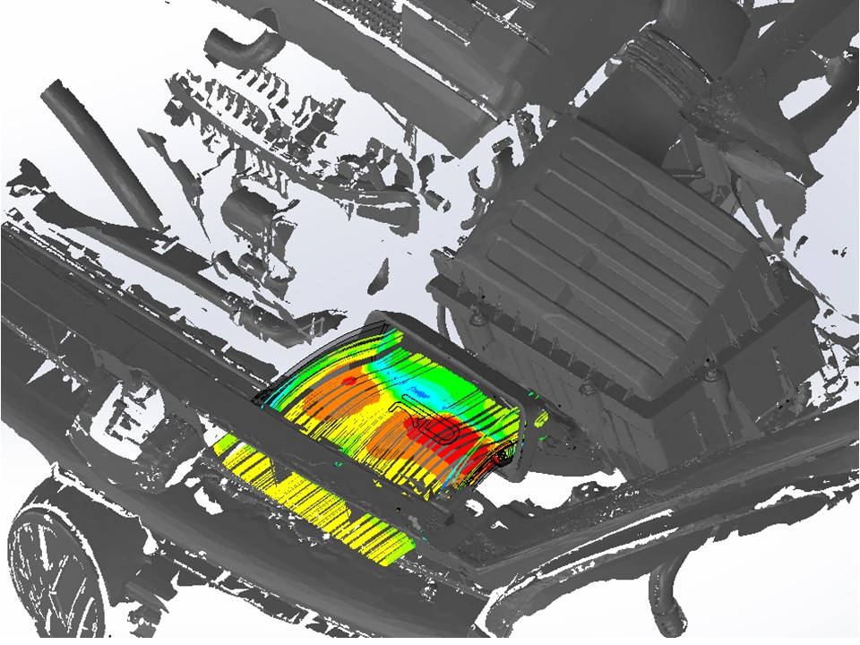 Our developed air duct for the MQB platform directly replaces the original air plenum and ensures a direct flow to the air filter box. With the original air plenum, the intake air must flow through two additional 90-degree bends to reach the air filter box, which increases the pressure loss throughout the entire charge cycle. Therefore, we decided to develop a direct air duct to provide more performance for your vehicles.