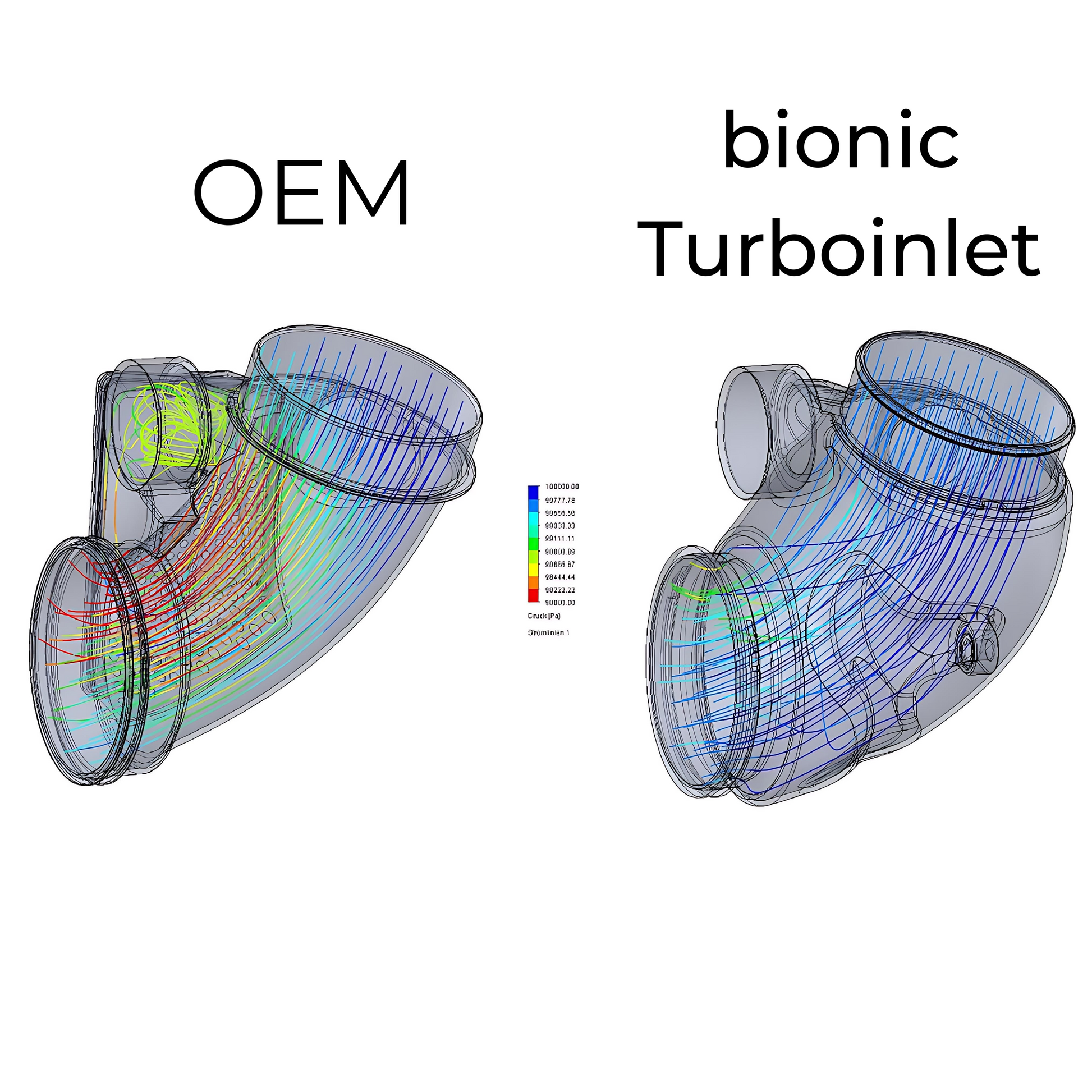 Dank seiner bionischen Formgebung, inspiriert von natürlichen Strömungsprinzipien, wird der Luftstrom gezielt laminar geführt, Turbulenzen werden minimiert – und das bedeutet: besseres Ansprechverhalten, schnellerer Ladedruckaufbau und gesteigerte Effizienz. Besonders im unteren Drehzahlbereich sorgt die optimierte Luftführung dafür, dass Drehmoment und Leistung früher und nachhaltiger zur Verfügung stehen – über das gesamte Drehzahlband hinweg.