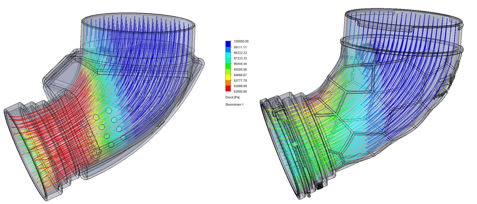 The outer skin of the inlet features a modern honeycomb structure , which not only creates a unique design but also increases the structural rigidity of the component – with minimal material usage. This allows the inlet to remain dimensionally stable even under high thermal and mechanical stress without adding unnecessary weight.