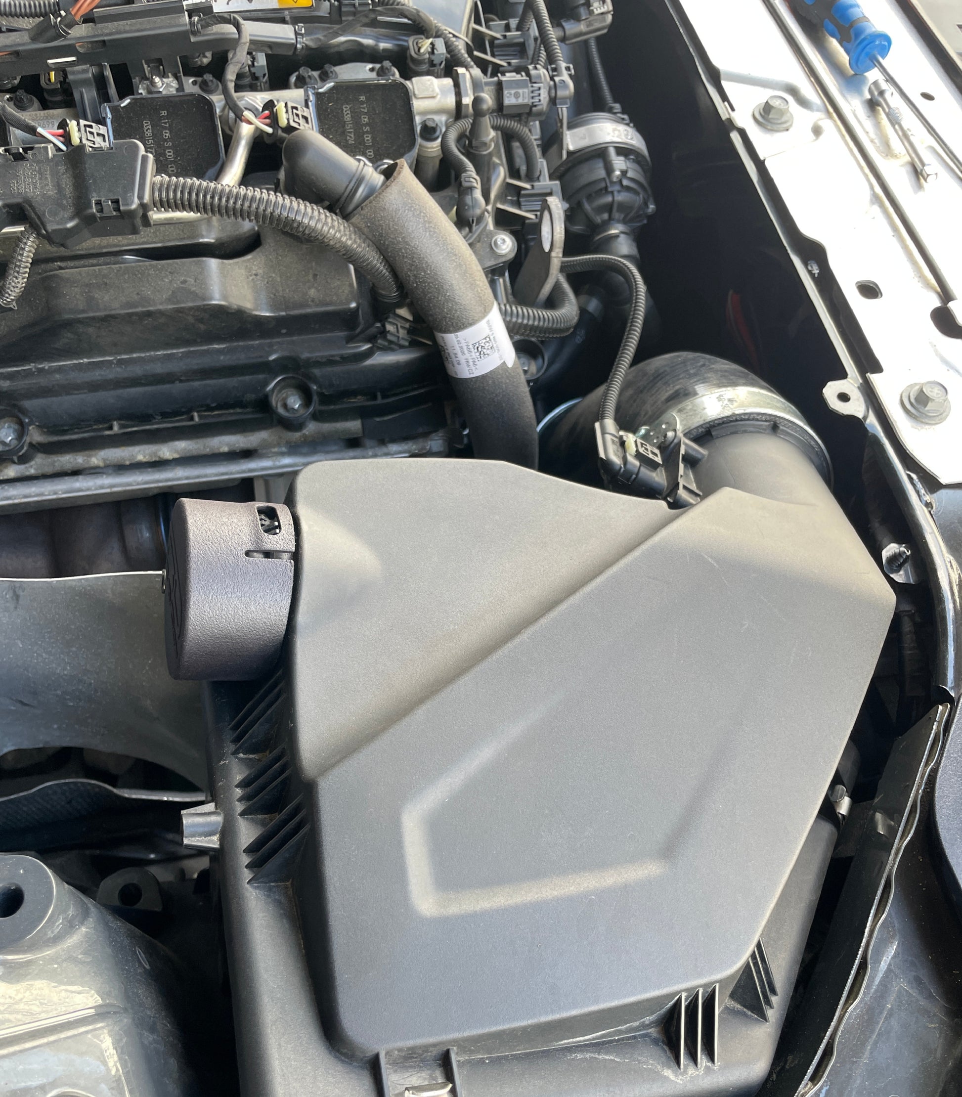 To completely eliminate airflow losses and damping effects, we also include a simple cap for the OEM air filter box . Here, too, a resonance chamber has been removed to maximize the direct and unobstructed airflow between the air filter and the turbo inlet. This effect has only a minimal impact, but is an additional gimmick for the performance junkie.